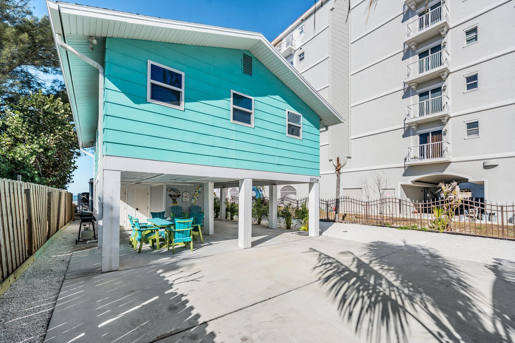 Escape to a beach life in this inviting beach home, perfect for a family vacation. Enjoy partial views of the Gulf of Mexico from the living room, with the beach just steps away. This cozy retreat offers all the amenities you need for a relaxing getaway. The spacious living room, inviting kitchen, and cozy bedrooms create a comfortable, coastal feel with ample space and storage. Downstairs, the home provides an ideal space with family and friends in the spacious open area, Offering a large covered area with a six seat dining table and BBQ grill. Additionally, the downstairs area includes a bathroom and shower, conveniently located for rinsing off after a swim in the Gulf. We provide beach chairs, an umbrella, and beach towels.